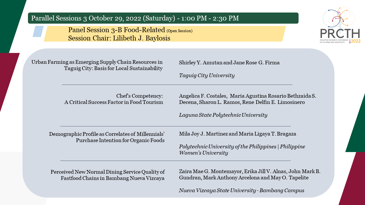 The Philippine Research Conference on Tourism and Hospitality is jointly organized by the Asian Institute of Tourism and the Department of Hotel, Restaurant and Institution Management.