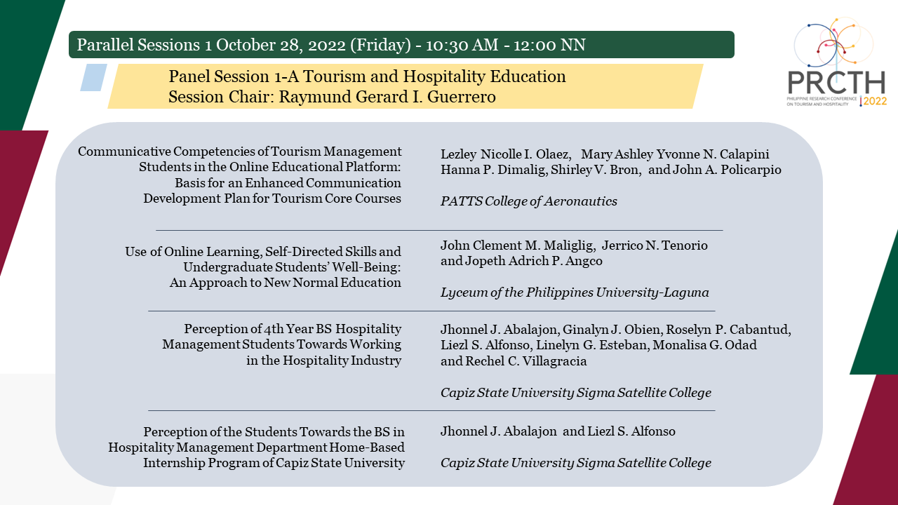 | Communicative Competencies of Tourism Management Students in the online Educational Platform: Basis for an Enhanced Communication Development Plan for Tourism Core Courses |