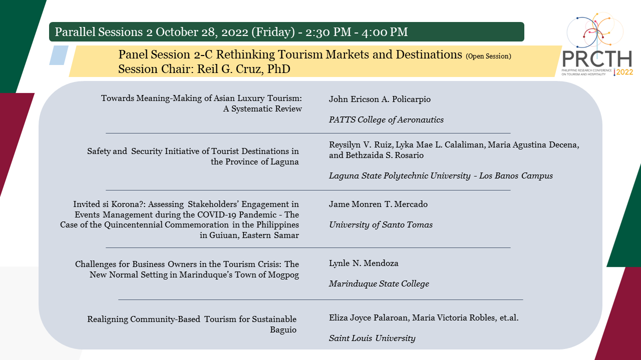 | Invited si Korona?!: Assessing Stakeholders’ Engagement in Events Management during the COVID-19 Pandemic – The Case of the Quincentennial Commemoration in the Philippines in Guiuan, Eastern Samar |