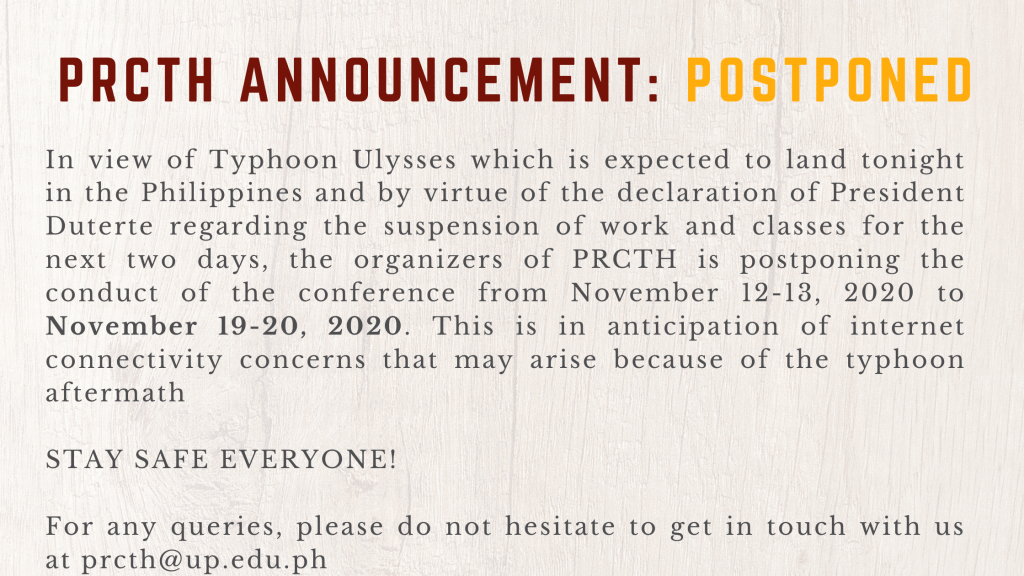 Categories PRCTH 2024 PRCTH ANNOUNCEMENT: POSTPONED Post author By prcth Post date November 11, 2020 1 Comment on PRCTH ANNOUNCEMENT: POSTPONED